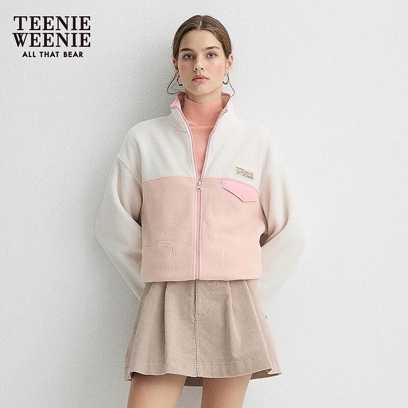 Teenie Weenie Bear Women's Color-Block Stand Collar Cardigan Sweatshirt