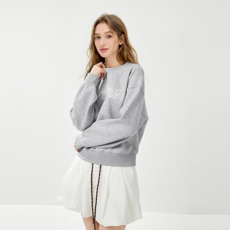 Qiu Shui Yi Ren Embroidered Lace Sequin Round Neck Sweatshirt