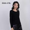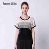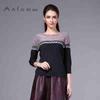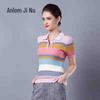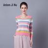 Anlom Striped Round Neck Half-Sleeve Knit Top