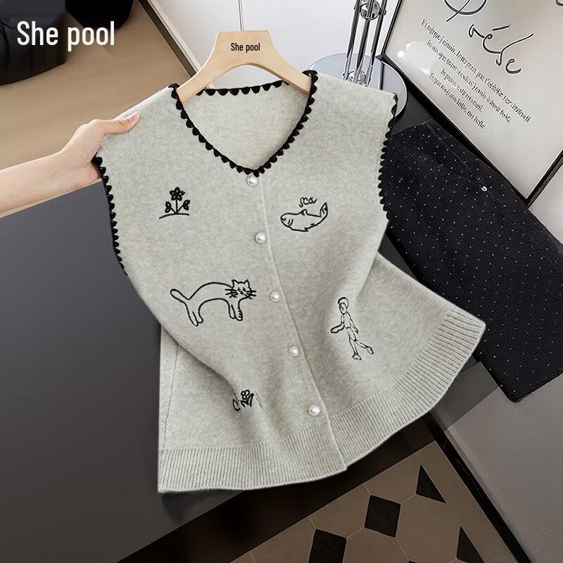 Women's Cartoon Embroidered V-Neck Knit Vest