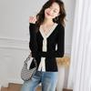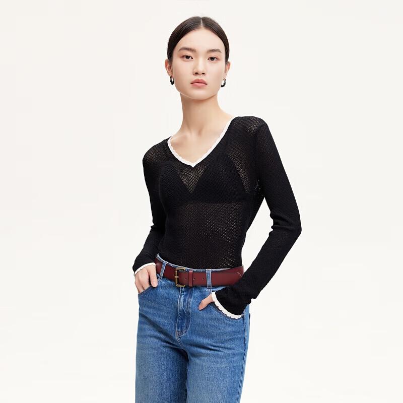 VEROMODA Women's V-Neck Hollow Color-block Knit Sweater