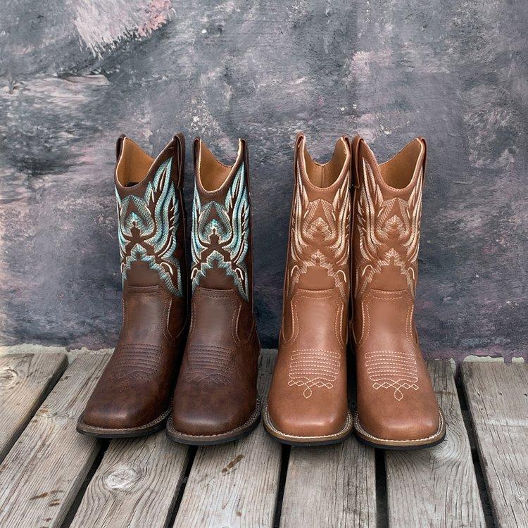 Martin boots Western cowboy boots Versatile women's boots Embroidered high tube retro small square head boots Xinjiang travel wear