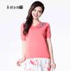Anlom Women's Red Silk Knit Short Sleeve Top