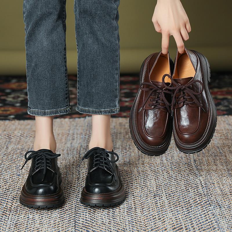 Platform small leather shoes women's British style 2025 spring and summer new single shoes round head thick heel sweet cool girls lace-up loafers