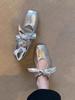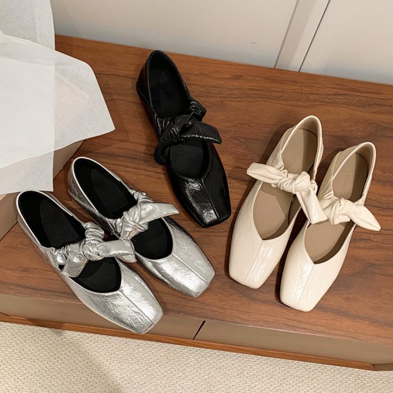 Flat single shoes women's bow word with shallow mouth small square head Mary Jane women's shoes spring and summer sweet and cool ballet shoes