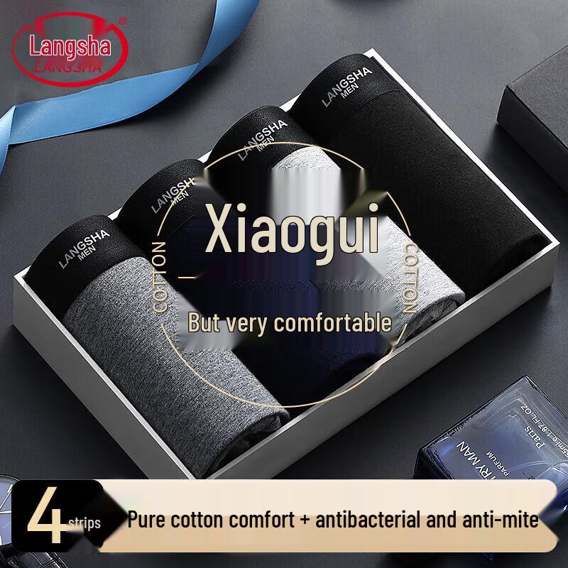 Langsha Men's Combed Cotton Antibacterial Boxer Briefs (4-Pack Classic Solid)