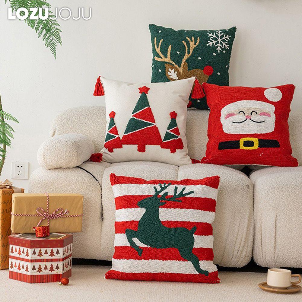 1PC LOZUJOJU Christmas Style Pillowcase Exquisite and Soft Embroidered Cushion Cover for Sofa Living Room Bedroom Home Decor Party Decorations