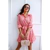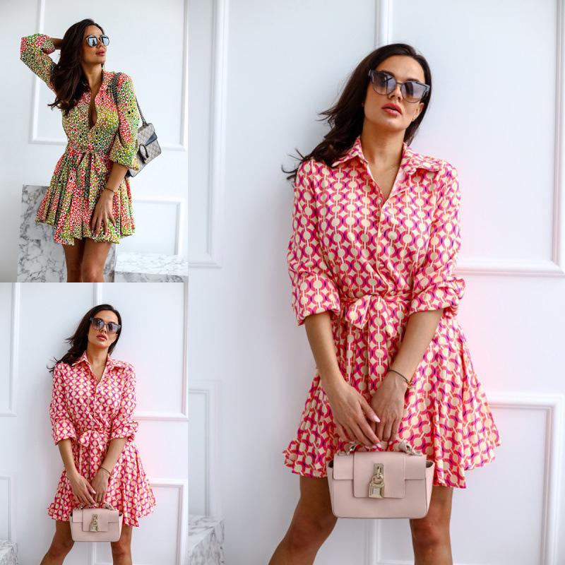 This stylish women's long-sleeve shirt dress features a chic tie-waist design and an eye-catching print, perfect for making a fashion statement. Crafted from high-quality polyester, it provides a smooth and comfortable fit. The dress is ideal for both casual outings and more formal occasions, offering versatility and elegance in one effortless piece.