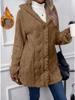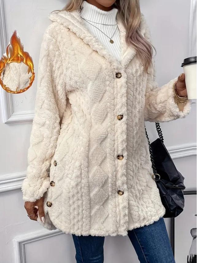 2025 Autumn/Winter Women's Warm Plush Hooded Cardigan - Button-Up Solid Color Coat