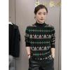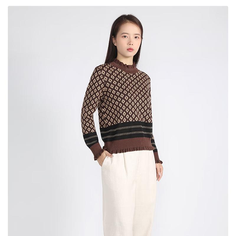 Yanu Women's Color Block Jacquard Mock Neck Pullover