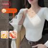 Langsha Women's Thermal Round Neck Long Sleeve Base Layer Top with Built-in Bra