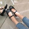 Xiaoxiangfeng retro color matching square head thick heel Mary Jane shoes women's spring flat bottom 2025 new French leather shoes