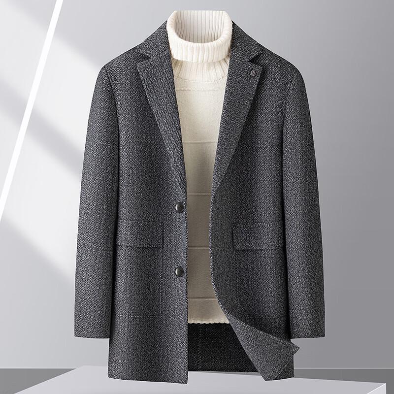 FAPAI Men's Merino Wool Blend Mid-Length Winter Coat