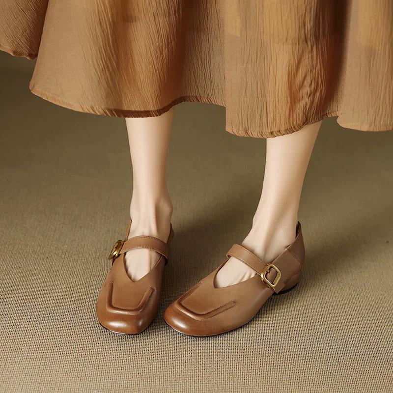 Great to wear French single shoes women's retro square head one-word buckle Mary Jane shoes women's round head low heel medium heel thick heel