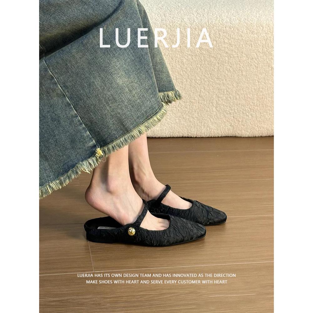 Sheepskin version~ New Chinese baotou half slippers, female style gentle fairy style lazy person with one foot, flat-soled muller shoes