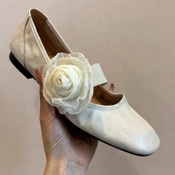 Sheepskin version~ inner height increase 4cm flower Mary Jane shoes women's pure handmade DIY pure handmade removable casual single shoes