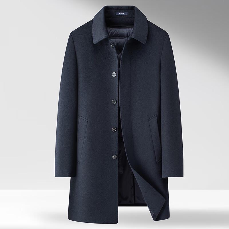 FAPAI Men's Business Lapel Merino Wool Down Overcoat