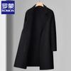 Romon Men's Autumn/Winter 100% Wool Mid-Length Plaid Overcoat