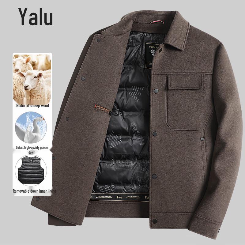 Yalu Men's Wool Blend Double-Faced Jacket with Detachable Goose Down Liner
