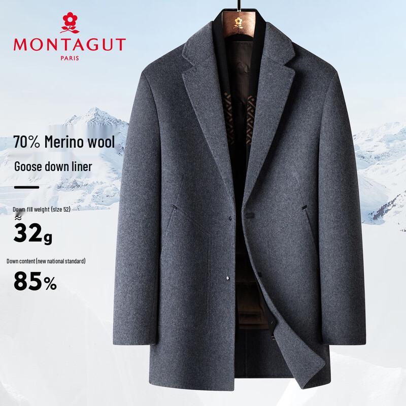MONTAGUT Men's Wool Blend Detachable Down Liner Winter Overcoat