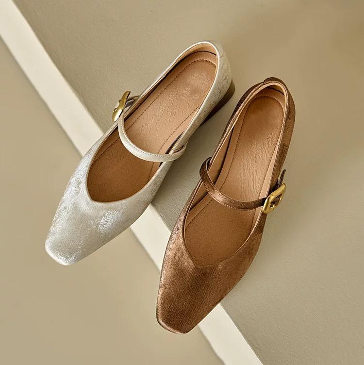 ins national style new Chinese style! French single shoes women's square head low heel ballet shoes retro one-word buckle Mary Jane shoes