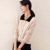 TUHUANG Women's Pure Wool Lapel Knit Sweater with Color Block Buttons