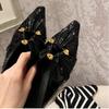 Sheepskin grape mother, the same summer new triangular buckle hollowed out pointed head pleated bag head Muller half slippers women's leather