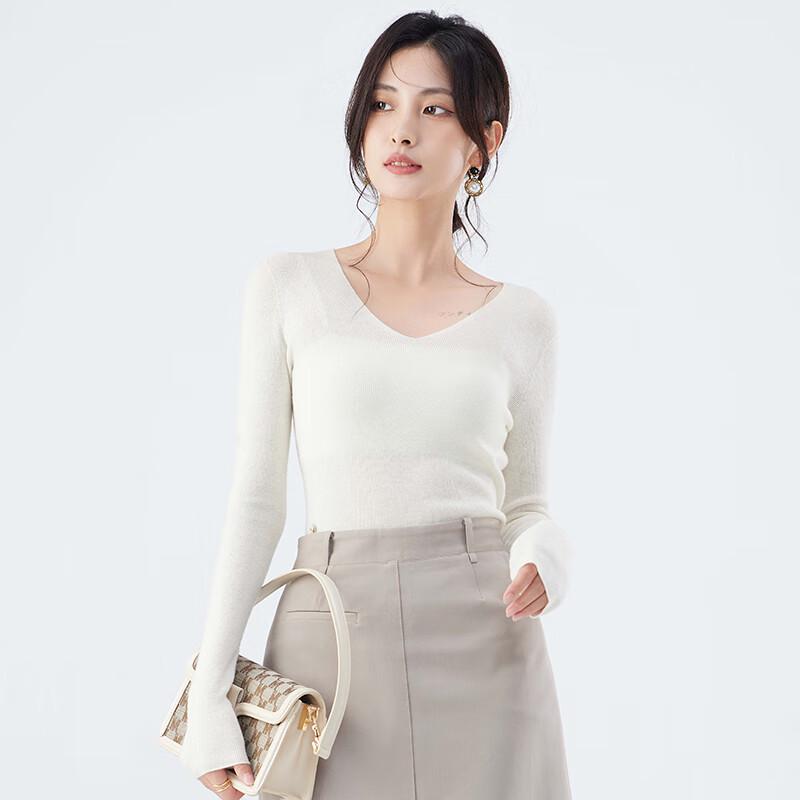 Fengxun Women's 100% Pure Wool V-Neck Sweater