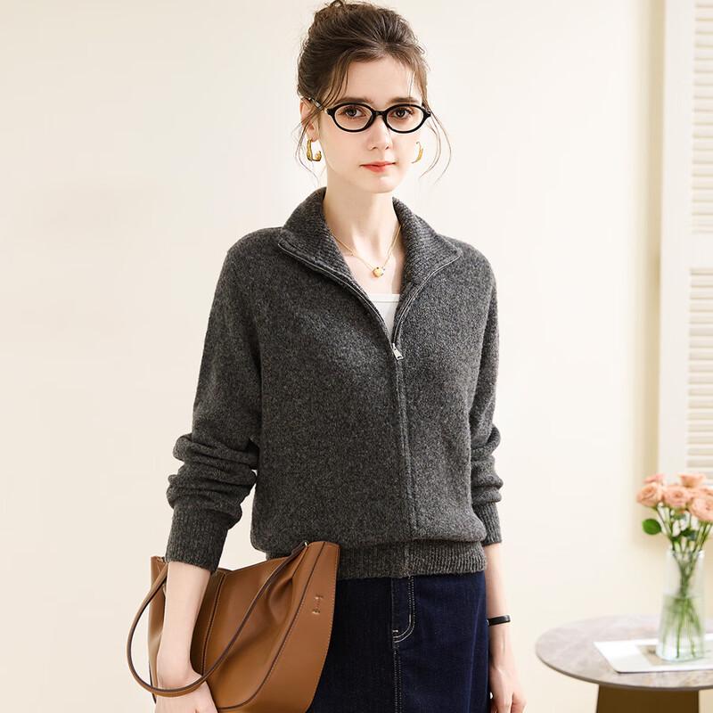 TUHUANG Women's Pure Wool Thick Knit Cardigan