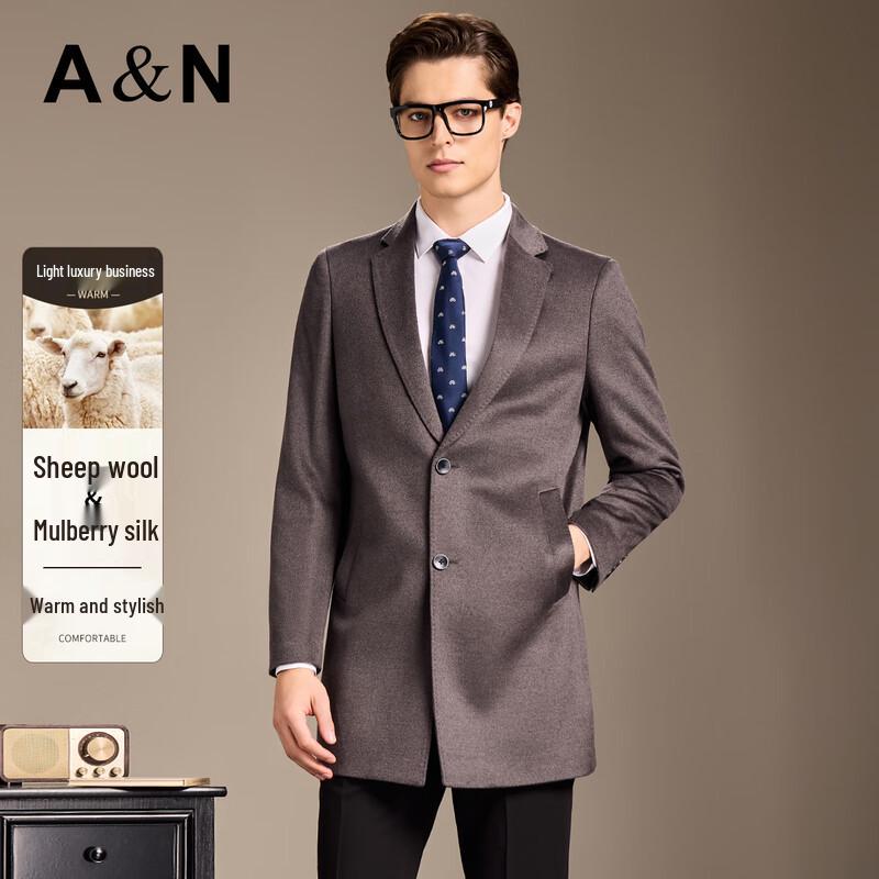 Men's Mid-Length Wool & Silk Blend Overcoat