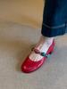 Sheepskin version~ Gem decorated high heels light mouth red shoes versatile retro leather Mary Jane shoes women's single shoes