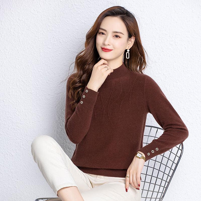 Fengxun Women's Mock Neck Wool Blend Sweater