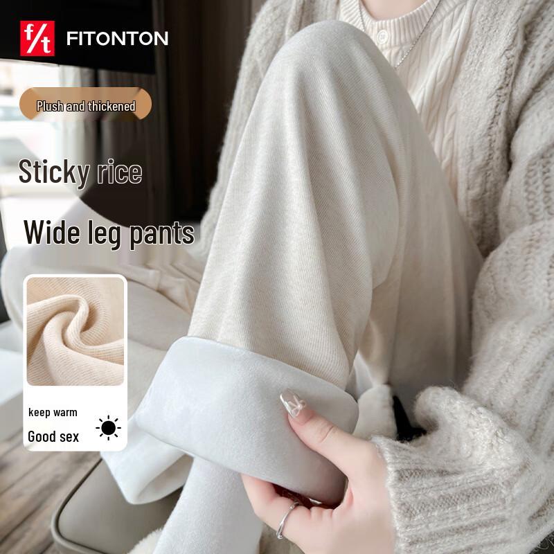 FitonTon Women's High-Waist Straight Leg Knit Casual Pants