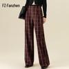 Fanzhen Women's Autumn/Winter Retro Plaid Wide-Leg Woolen Trousers