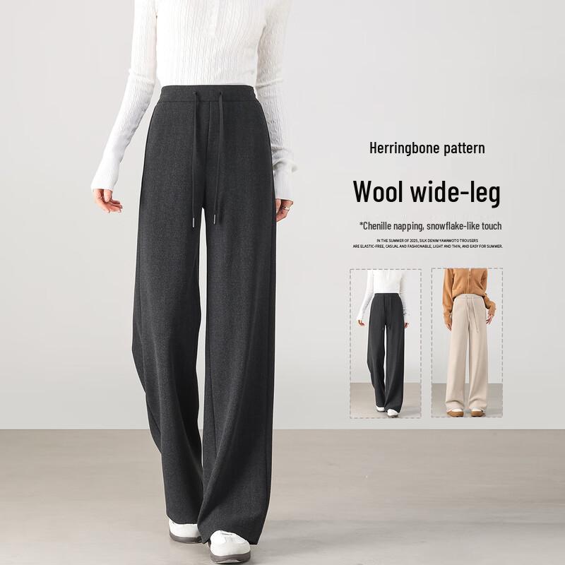 Handu Yishe Dámské kalhoty s vysokým pasem, texturované rybí kostí, s rovnými nohavicemi