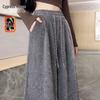 Women's Wool-Blend High-Waist Wide-Leg Drawstring Casual Pants