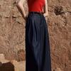 Sancai 2025 Autumn Elastic Waist Faux Denim Straight Leg Trousers