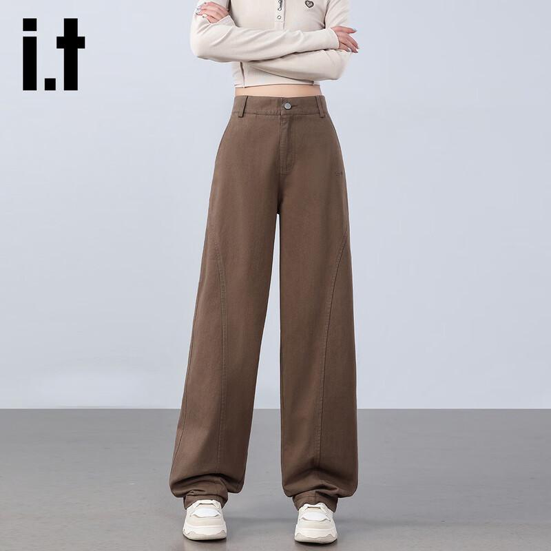 izzue it Women's High-Waist Cotton Loose Curved-Leg Jeans