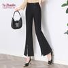 Dámské široké kalhoty s vysokým pasem a rozparkem na lemu