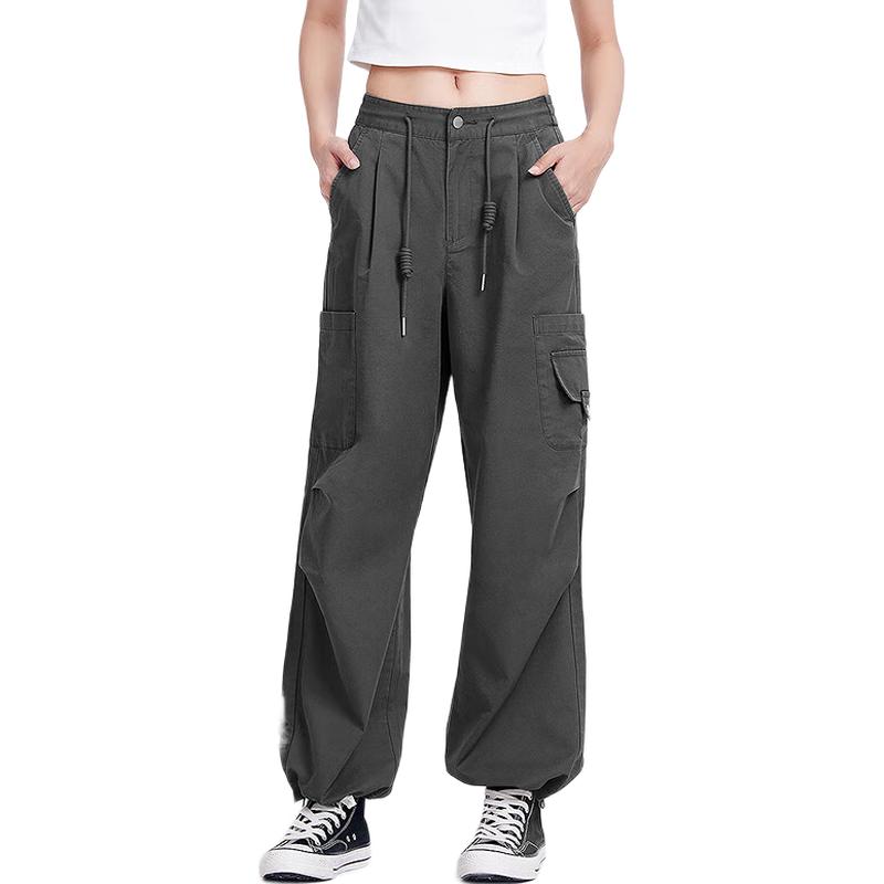 Women's Elastic Waist Wide-Leg Cargo Pants with Two-Way Hem