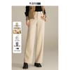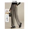 Mengshuya Women's High-Waist Herringbone Wool Blend Straight-Leg Pants