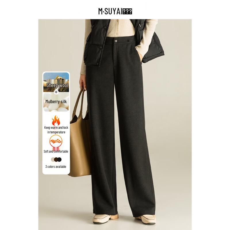 Mengshuya Thickened Silk Wool Blend High-Waist Straight-Leg Trousers