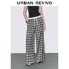 UR Women's Casual Plaid Patchwork Drawstring Wide-Leg Pants