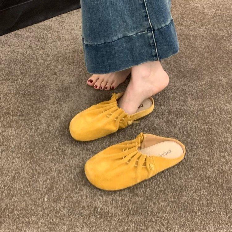 [Youshilai] Retro plisované jemné baotou poloviční pantofle dámské 2025 jarní nové venkovní nošení silná podrážka jeden pedál