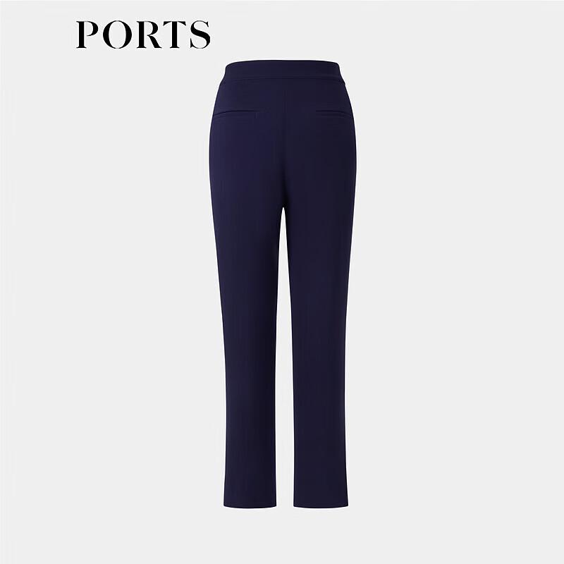 PORTS Spring Navy Side Slit Slim-Fit Casual Pants