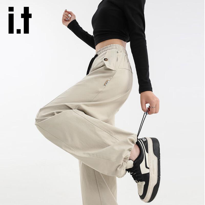 Izzueit Women's High-Waist Drawstring Wide-Leg Cargo Pants