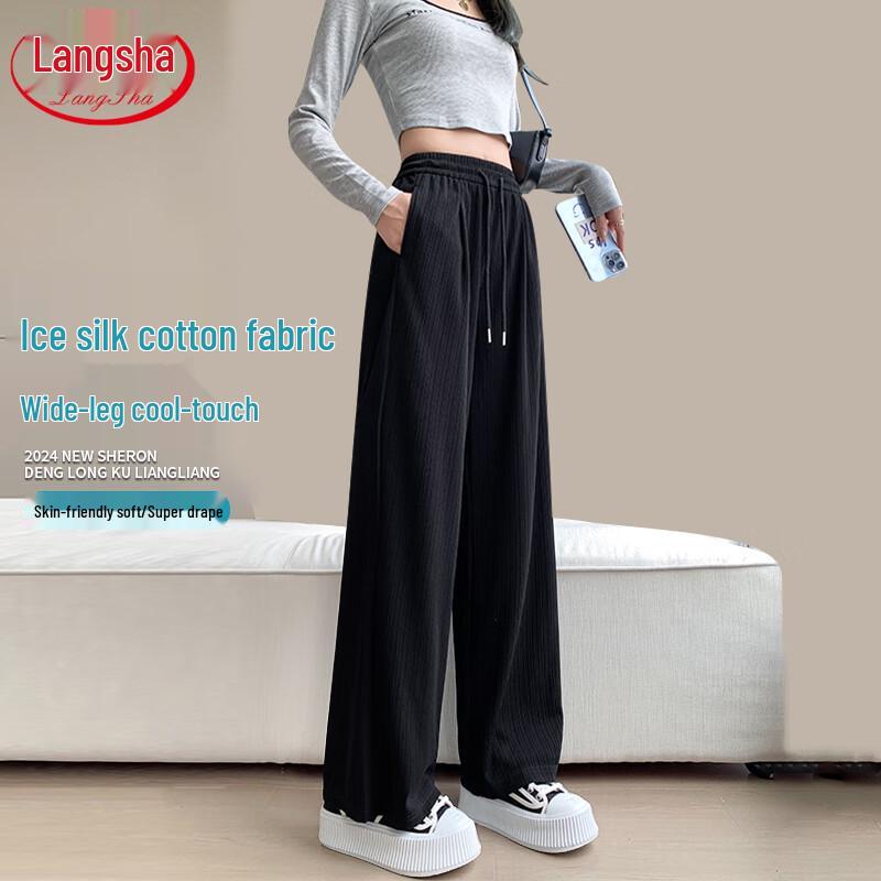 Langsha Women's Ice Silk High-Waist Wide-Leg Pants