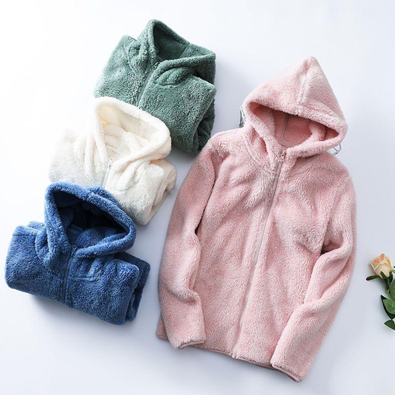 Jacket Women's Trend Winter Fleece Thickened Double-Sided Fleece Jacket Hooded Sweater Women's Cardigan Zipper Fleece Jacket