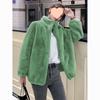 Dámská krátká bunda z korálového fleecu, podzimní a zimní oblečení, nový oboustranný fleec, zateplený, velká velikost, volný fleecový svetr