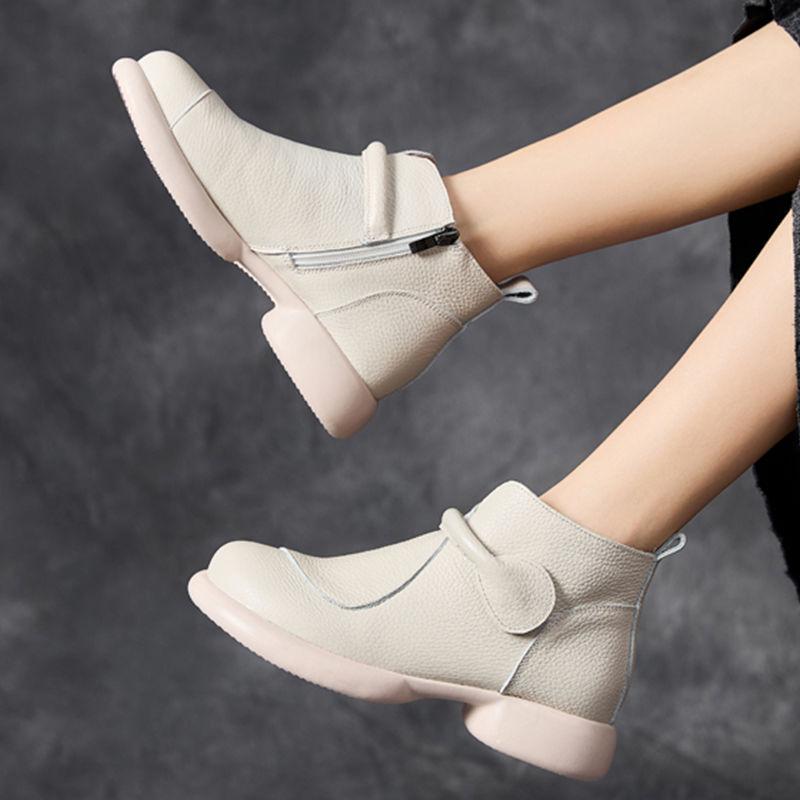 New zip up ankle boots ladies comfortable genuine leather shoes women autumn waterproof chelsea short plush boots woman